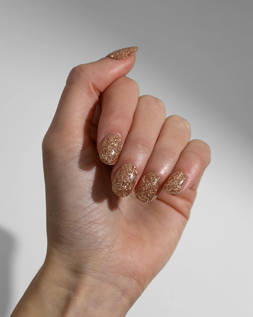 Glittery Roségold est une couleur enchanteuse qui apporte une touche de romantisme et d'élégance grâce à son scintillement et ses paillettes d'un délicat rose doré. La combinaison de la teinte chaude rose et de l'effet scintillant glamour donne à tes ongles l'apparence de bijoux précieux.